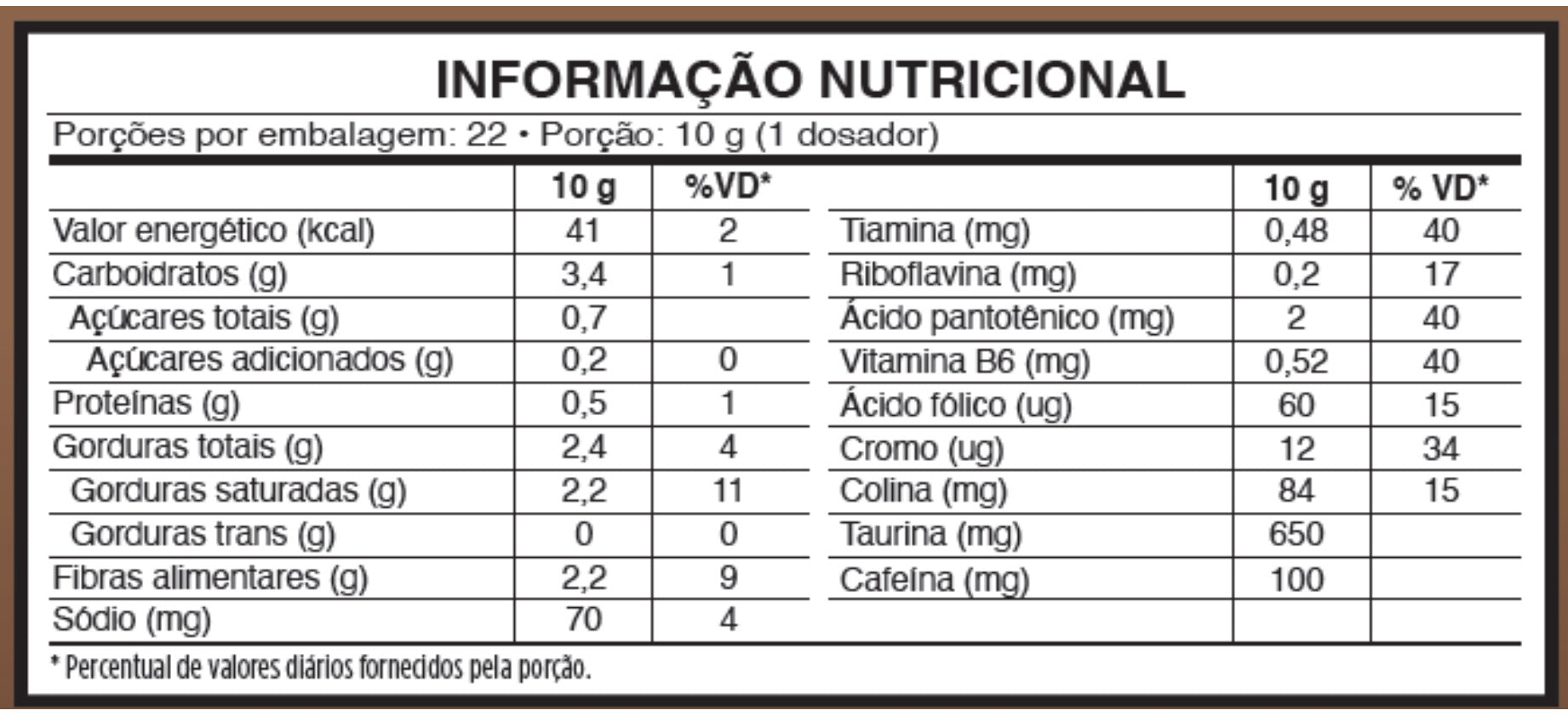 Entre seus ingredientes estão 100mg de cafeína por porção, que auxilia no aumento do estado de alerta e na melhoria da concentração. É um combustível para que as tuas atividades terminem, mas a tua energia não.