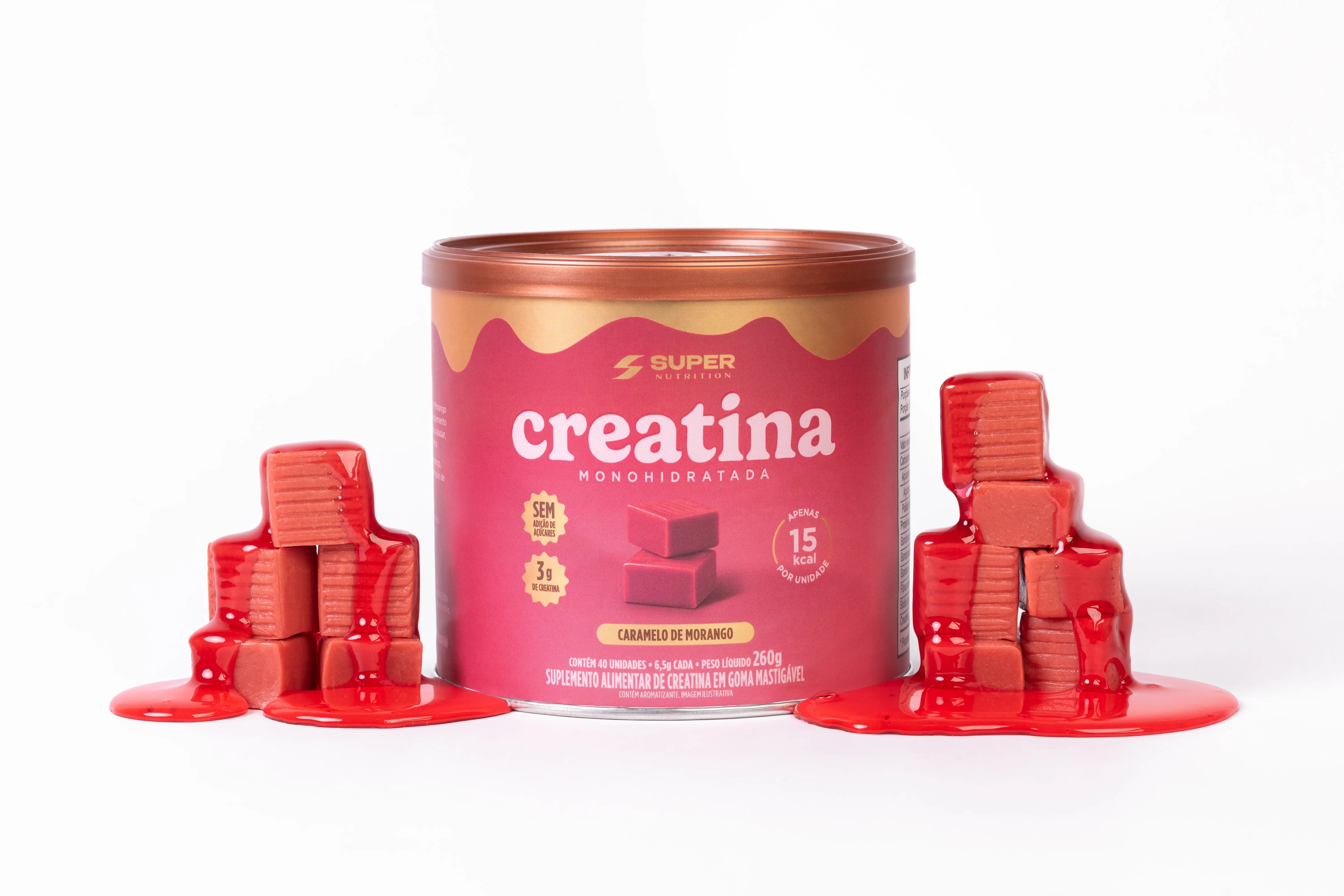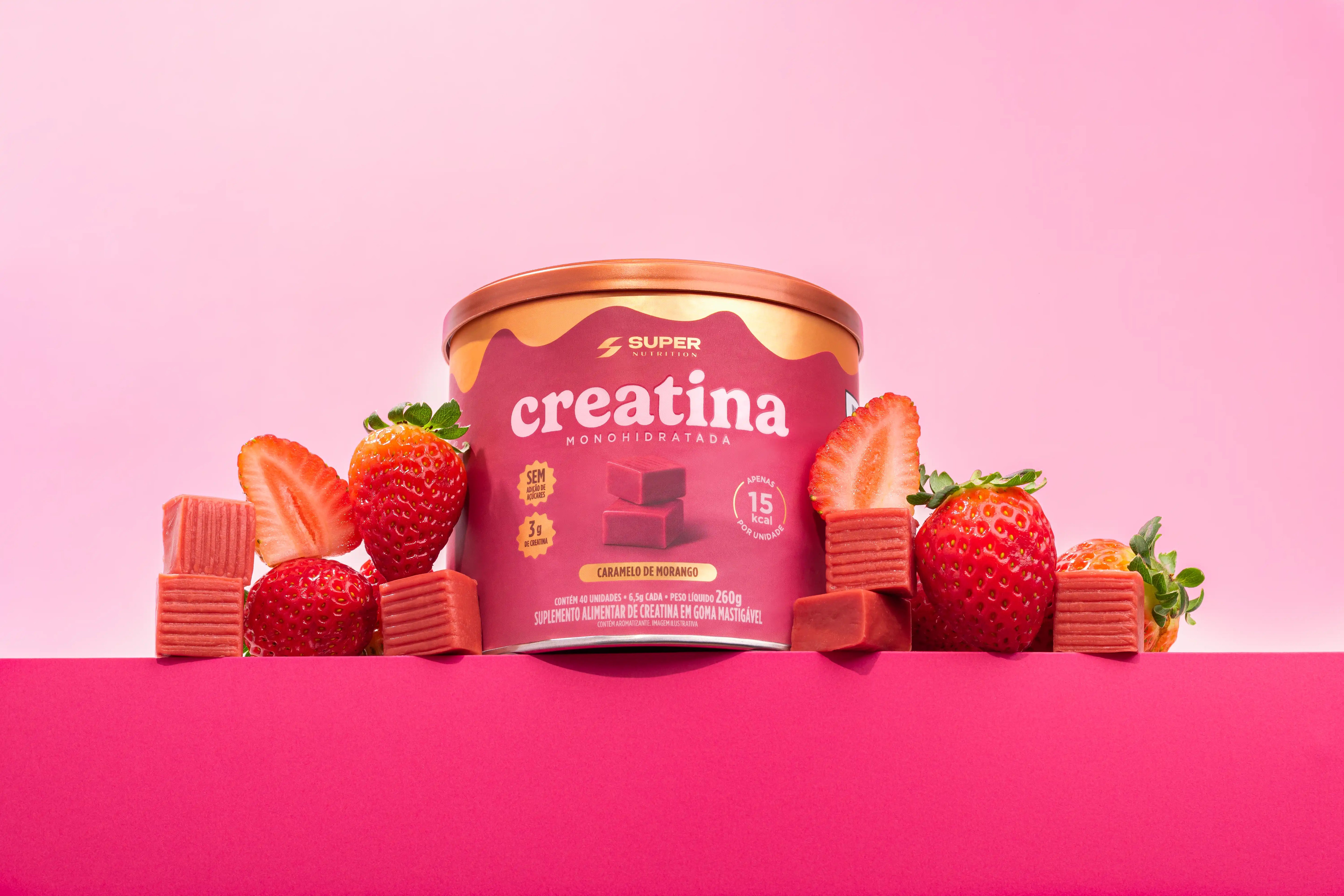 Caramelo sabor morango com creatina, macia e saborosa, é a melhor opção para otimizar seus treinos.