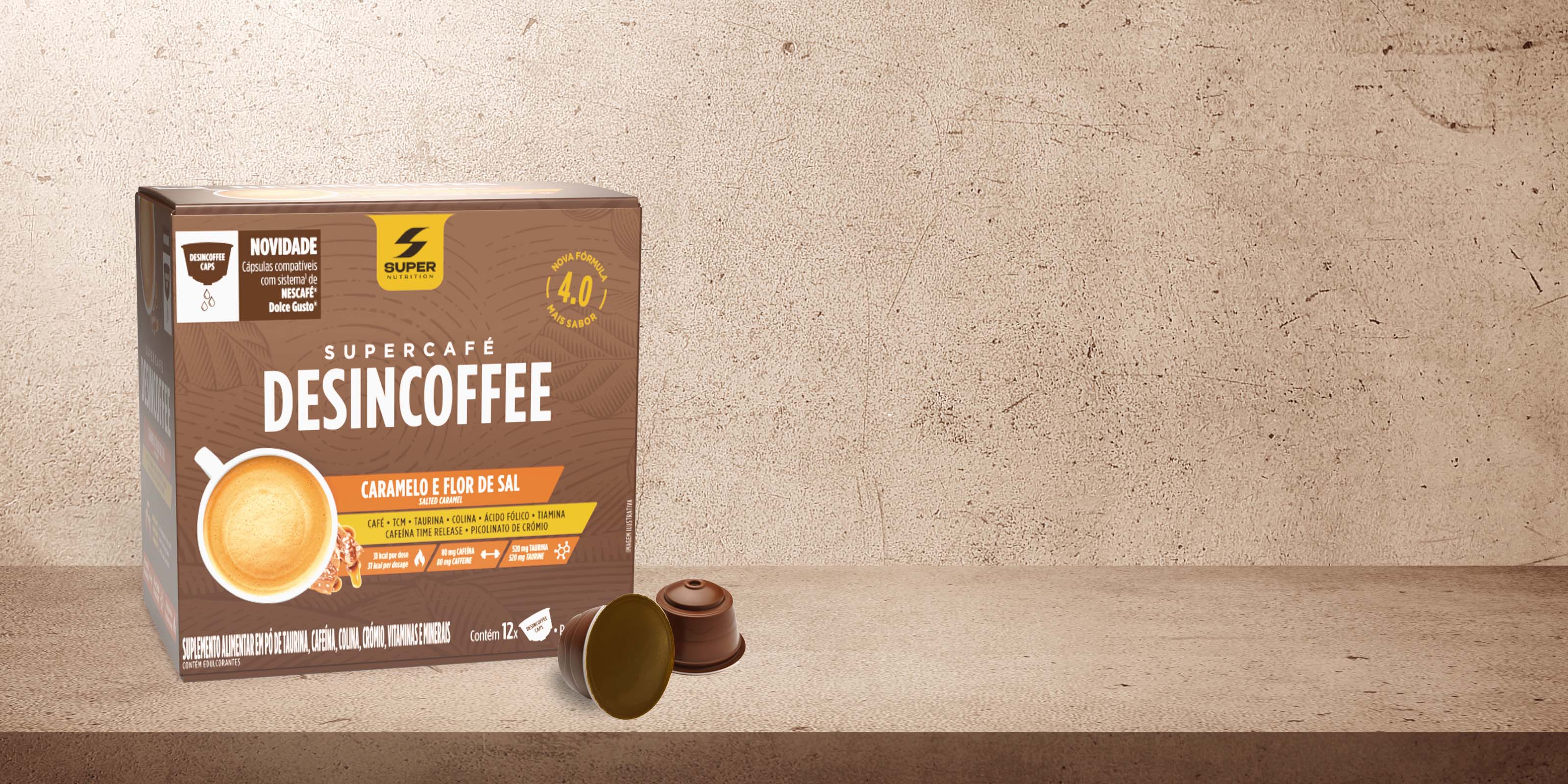 Cada porción de Desincoffee tiene 80 mg de cafeína (equivalente al valor de un espresso), que, combinada con la TCM, optimizará el efecto de la cafeína, proporcionando un efecto energético más duradero (al contrario de lo que sucede cuando tomamos un espresso).