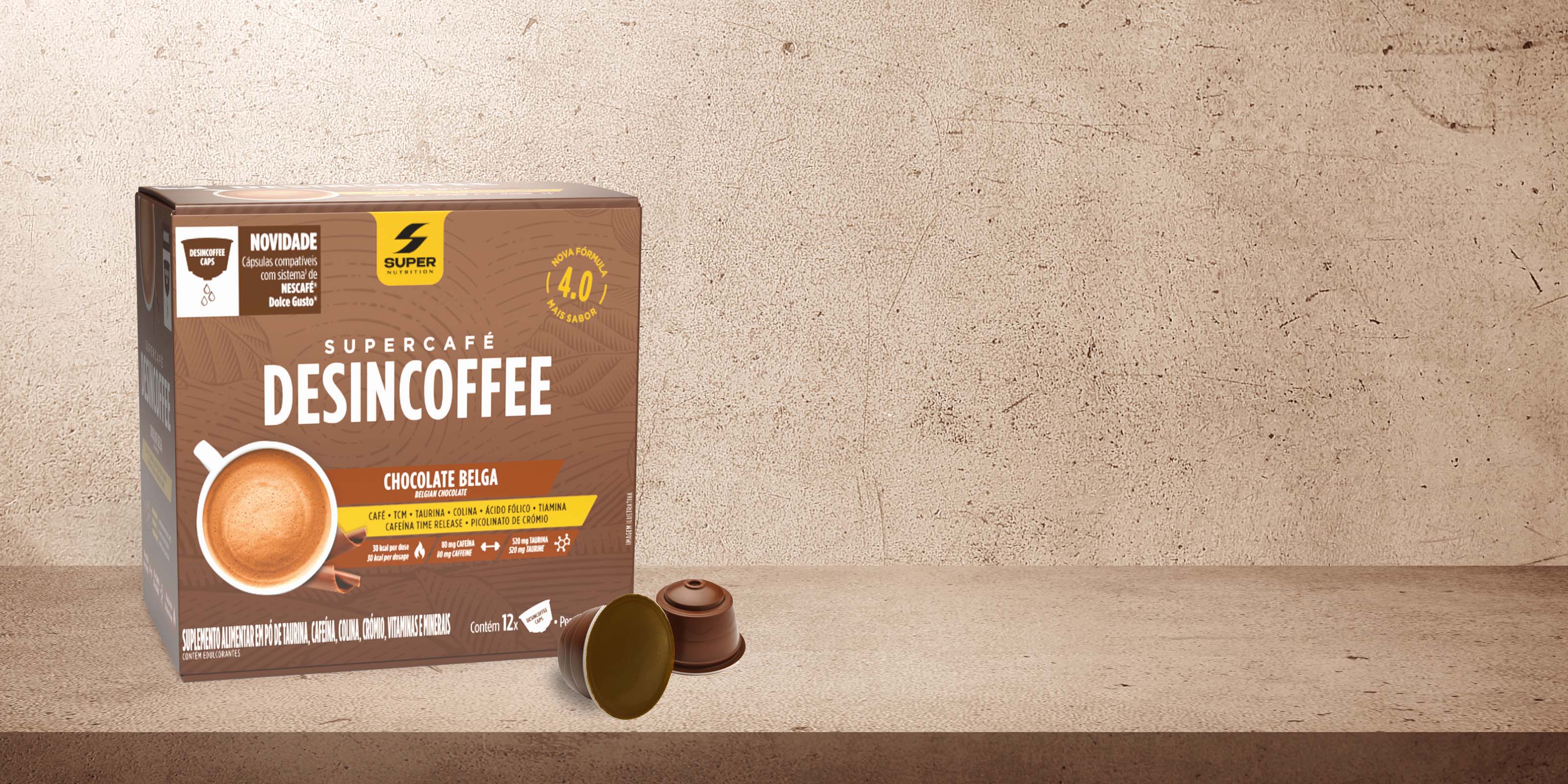 Cada porção de Desincoffee possui 80mg de cafeína (equivalente ao valor de um café expresso), que aliada ao TCM irá otimizar o efeito da cafeína, proporcionando um efeito energético mais duradouro (ao contrário do que ocorre quando tomamos um café expresso).