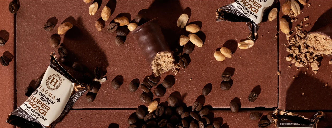 Amendoim envolvido com SuperCoffee Vanilla Latte. A Colaboração entre a Haoma e a Caffeine Army deu frutos!
