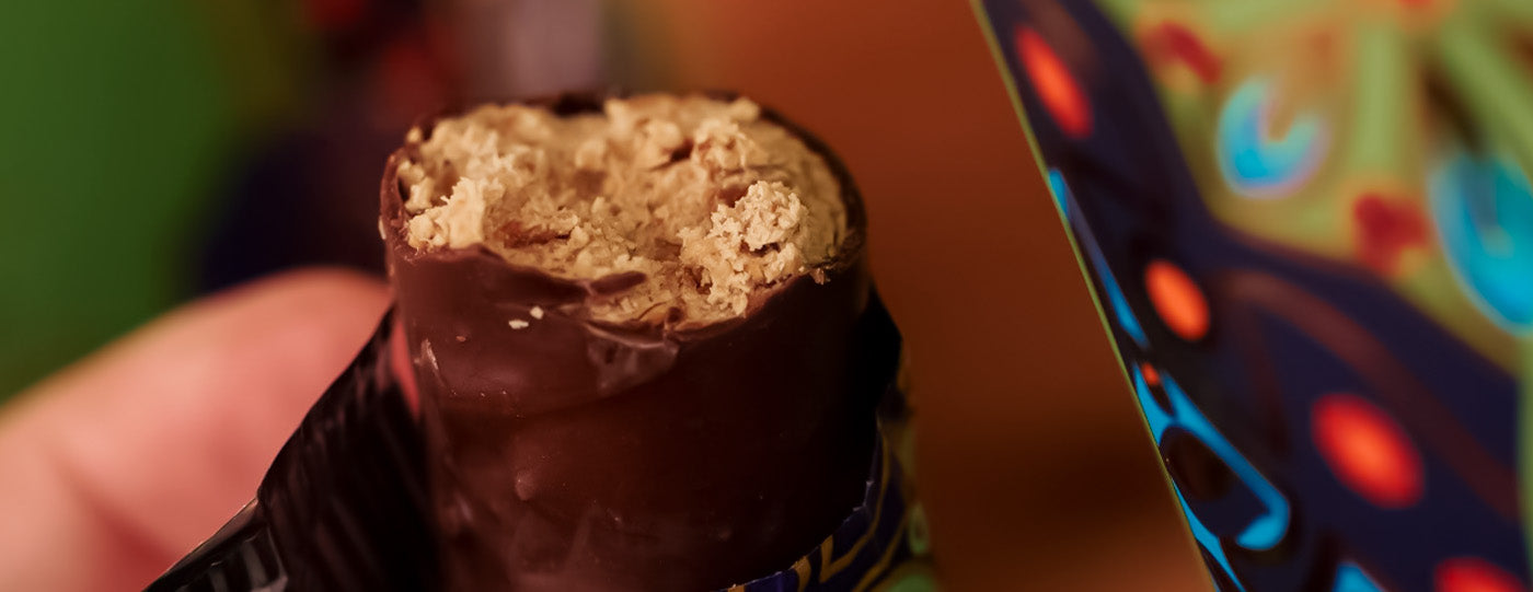 Paçoca de amendoim sem adição de açúcares, coberta com o delicioso chocolate Haoma. 56% de cacau!